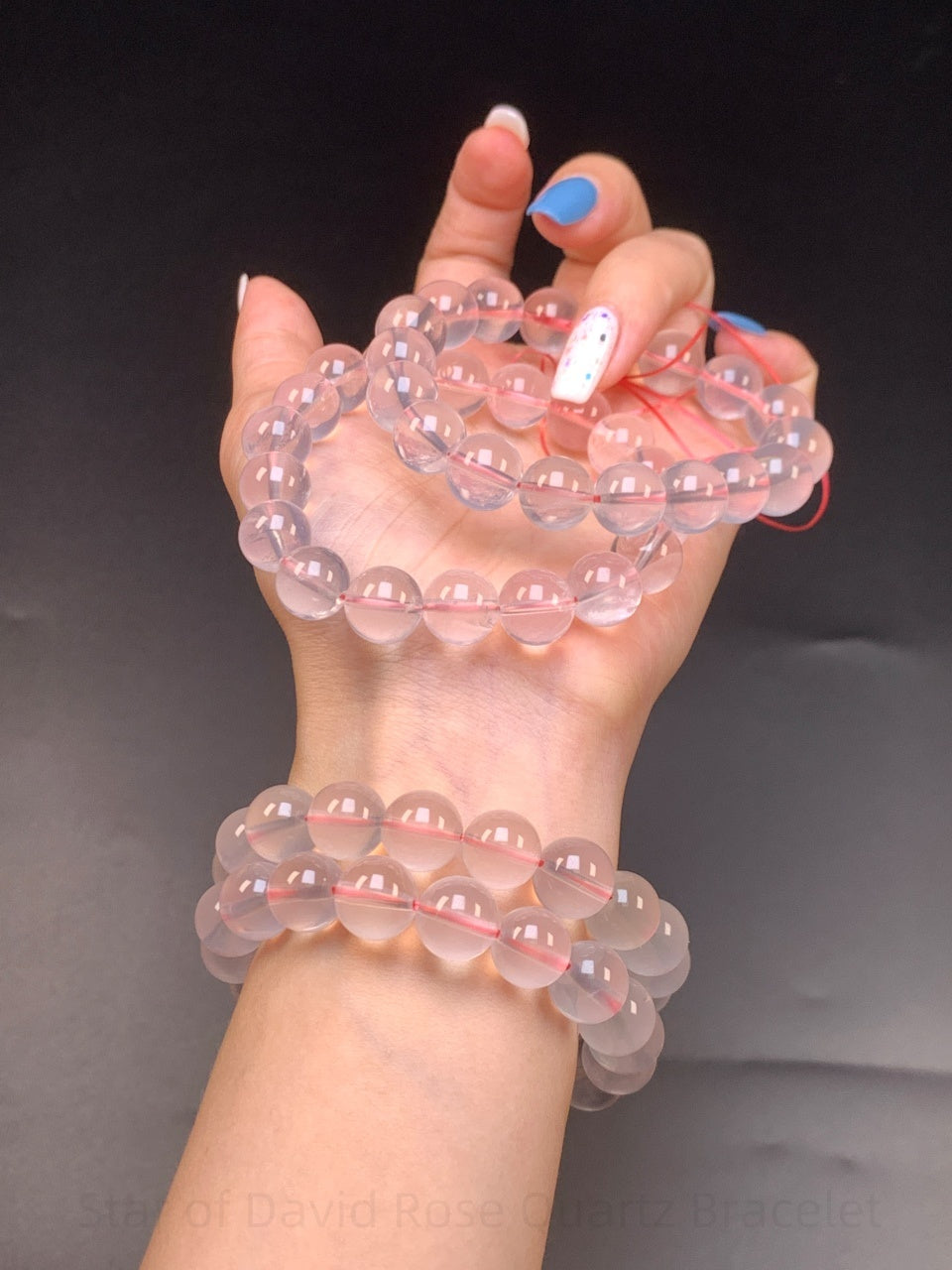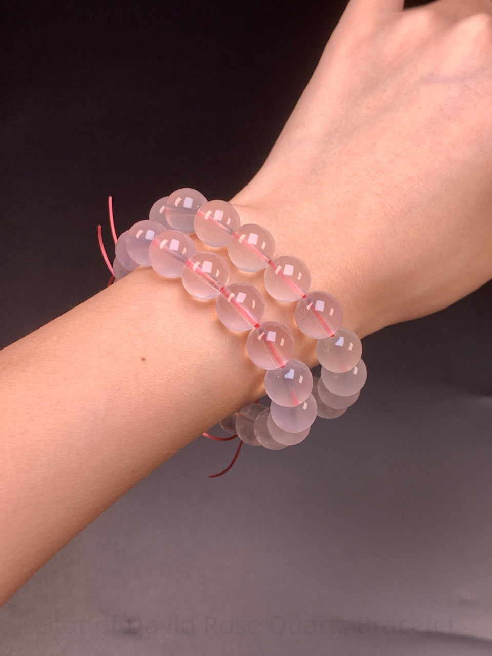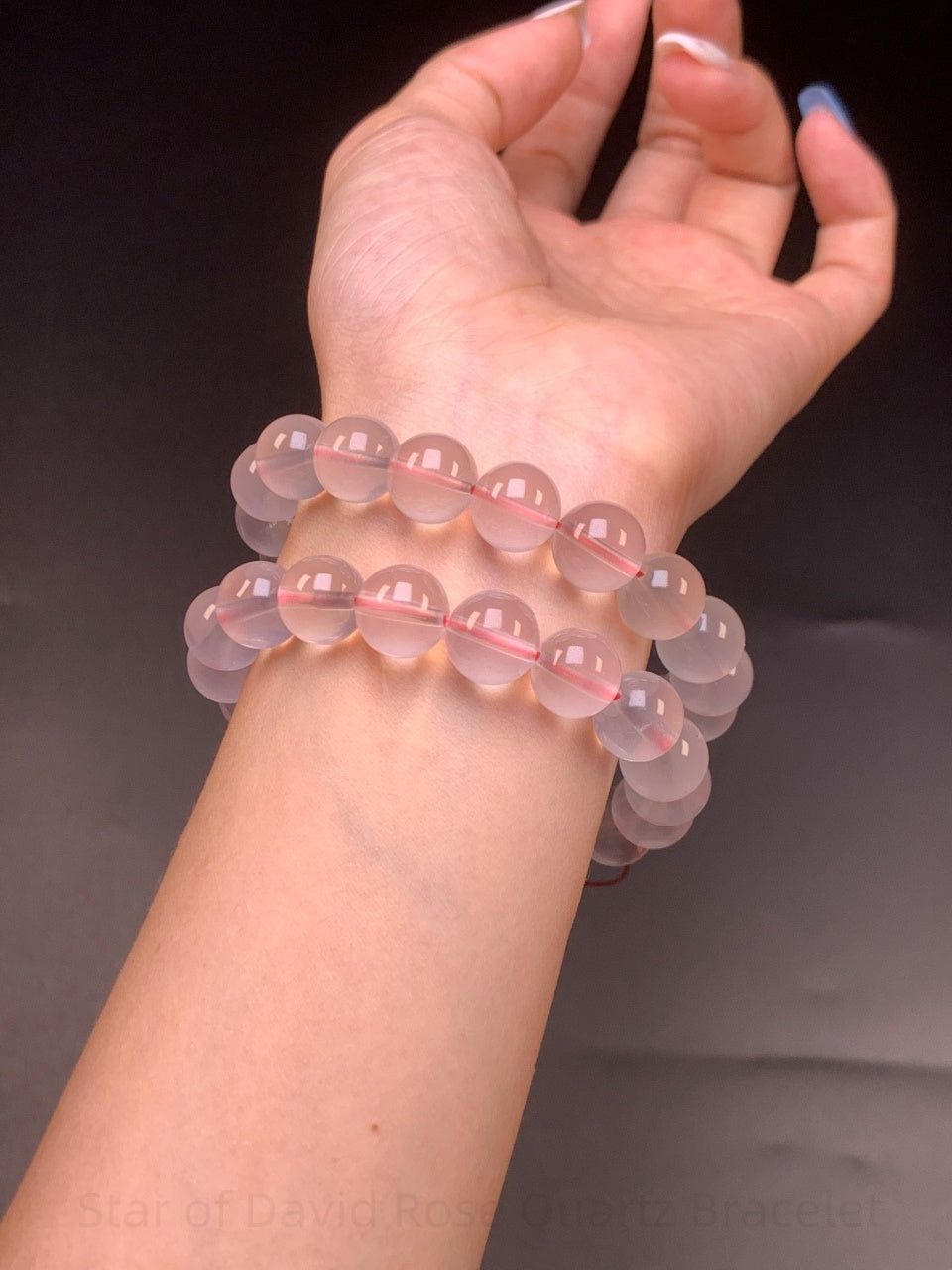 This exquisite Star of David Rose Quartz bracelet combines the heart-opening properties of premium pink quartz with the sacred geometry of the hexagram - a cosmic symbol of balance and divine union in mystical traditions worldwide.