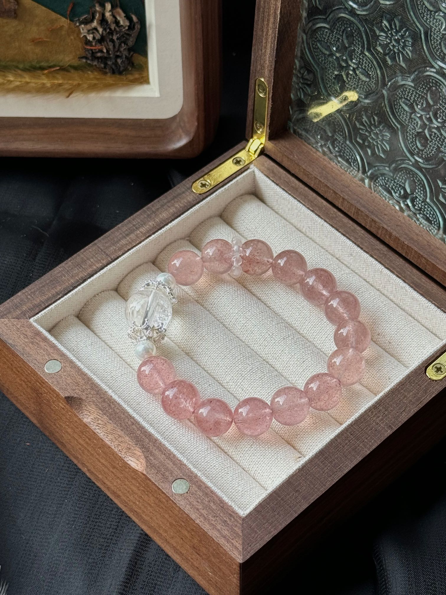 This carefully curated bracelet combines Strawberry Quartz, White Phantom, and Rose Quartz in alignment with Five Elements philosophy, specifically designed to resonate with Metal and Fire elemental energies. Each stone's natural patterns tell stories of geological transformation, crafted to create a harmonious energy flow between Heart Chakra and Solar Plexus. The graduated bead sizing creates dynamic energy circulation while maintaining minimalist elegance.