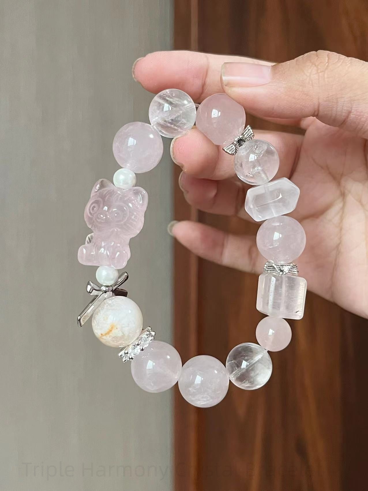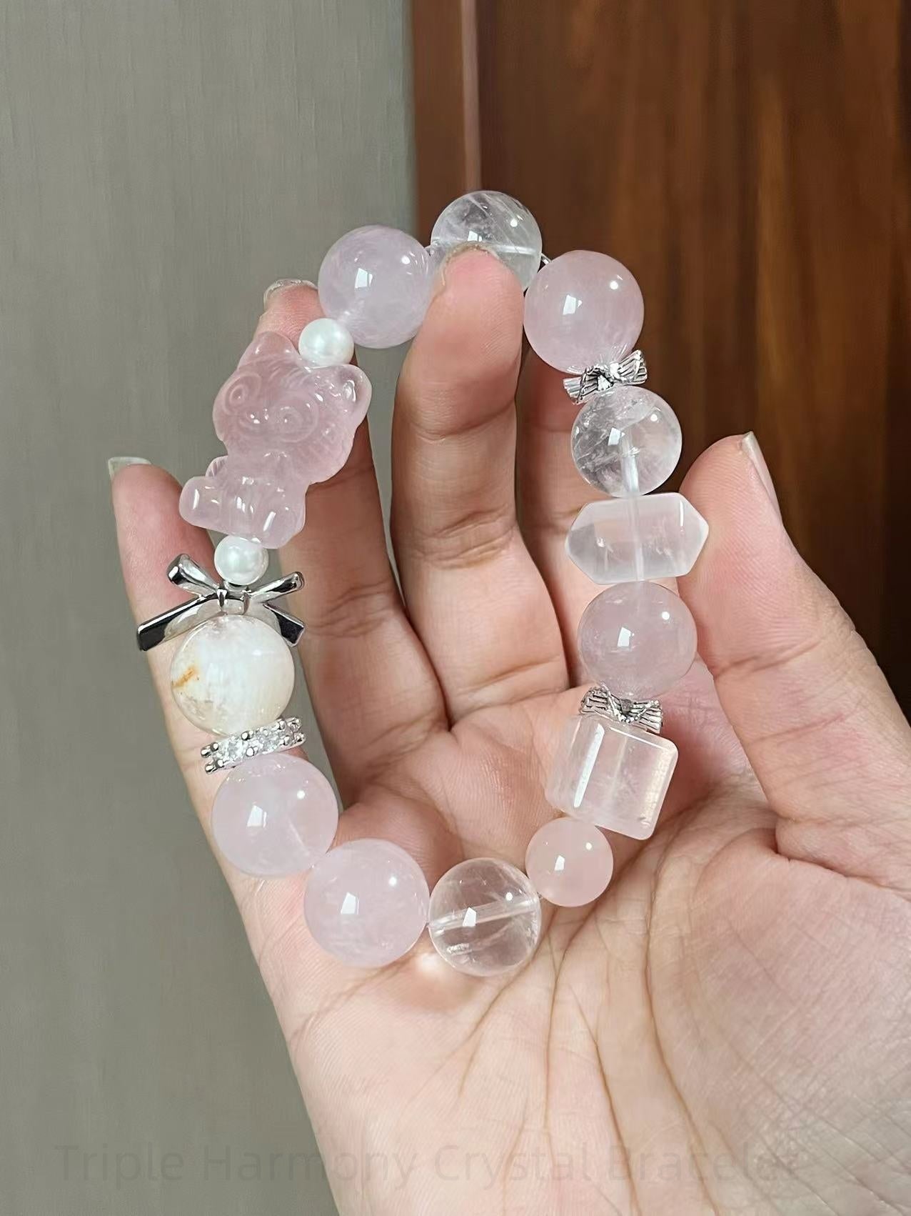 Triple Harmony Crystal Bracelet - Rose Quartz, Milky Quartz, White Phantom for Love, Clarity & Spiritual Protection